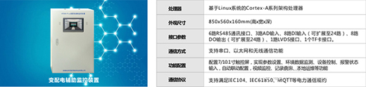 5)HT500变配电辅助监控装置:数据采集并上传至环境监测平台,支持RS485、以太网、GPRS等多种数据传输方式。同时具有断电数据储存,供电恢复后,数据上传的功能。