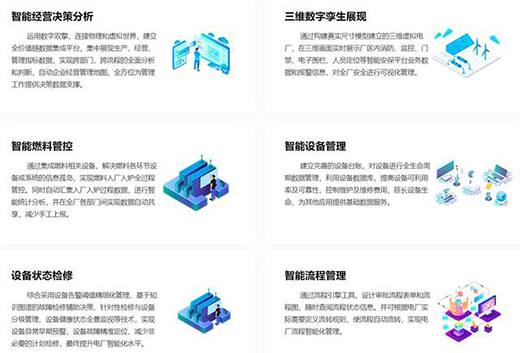 智慧能源示范工程包括智慧能源平台和数据中心、智慧风电、智慧光伏、智慧水电、智能电厂等示范工程。其中在智慧电厂方面,重点开展数字化三维协同设计、智能施工管控、数字化移交、先进控制策略、大数据、云计算、物联网、人工智能、5G