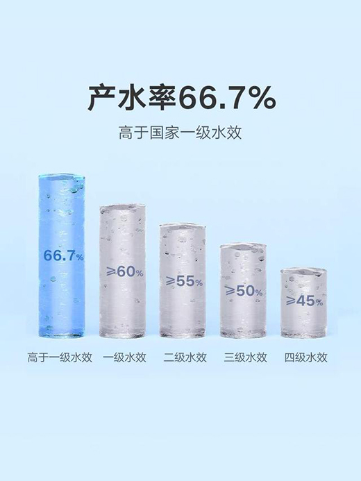新标准的一个重要变化是对额定净水量的规定,这是指在滤芯寿命周期内所能制取的净水总量。评估净水机的水效等级需要同时满足净水产水率和额定总净水量这两个重要指标,前者决定了会产生多少浓水,后者决定了滤芯能用多久。