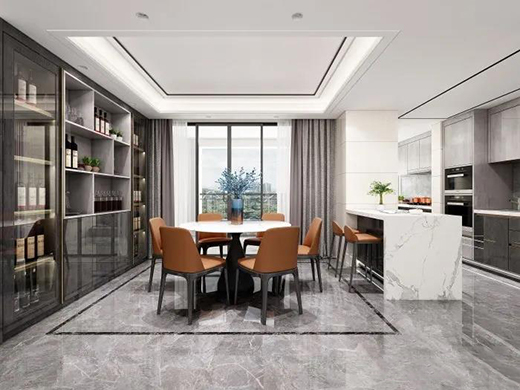 定制铝柜的虚实布置,开放与封闭式结合设计,将杂乱零碎的物品收纳起来,美观的展示物件摆放在外,藏露有致,为打造整洁而有艺术品味的家居提供强大的功能。具有很强的时尚感与实用性,干净整洁,展露空间之美。