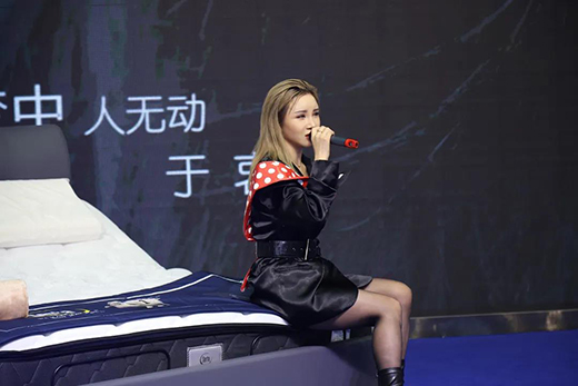 6月27日,在大明宫建材家居北二环店,“快乐女声”实力型选手谈莉娜,在活动现场倾情演唱,为舒达梦享618 助力。