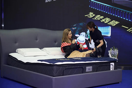 ▽斯琴高丽参观并体验舒达iComfort智能睡眠系统。