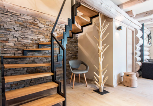 AmDeCo设计团队运用浅色原始木建材,搭配深色系家具、木质、铁件组合以及动物图案家饰,塑造出野性基调的室内环境,让这间小屋也建立在永续发展和对环境友善思维上。造型火炉作为客餐厅分界,同样也是空间重点,餐厅用强烈深色木纹带出屋内个性,鲜明节点与年轮都能展现与众不同氛围,加上楼梯走道旁以裸露砖墙凸显自然美感,形成砖块与木头间相互对话。而卧房部分,维持简约清爽基本机能性,运用开窗设计注入光感,同样使用大量原木元素营造惬意氛围。