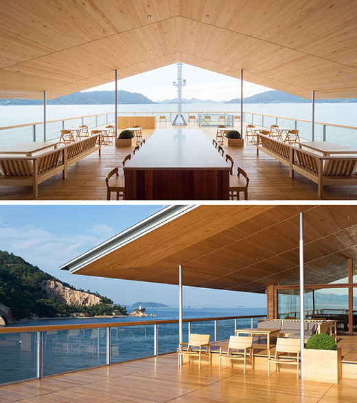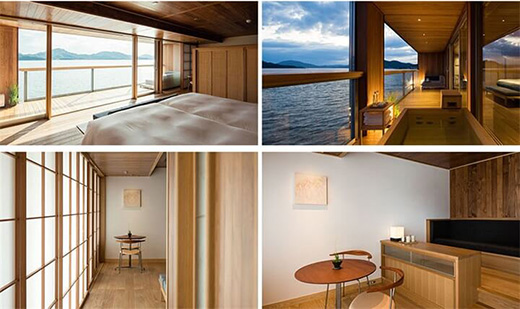 拥有「漂浮在濑户内海上旅馆」之称的豪华渡轮——Guntû,由建筑师Yasushi Horibe参与规划设计,船舱内拥有19间敞舒适的客房,同时附设健身房、美容沙龙、咖啡厅酒吧。酒店拥有一个带户外休息室的大型屋顶平台,一间酒吧和充足的空间,可欣赏到水景。还有一个室内休息室,有一个醒目的尖顶木制天花板和弧形酒吧。木头元素充满整个酒店,除了木镶板以及木地板,大部分家具也由木材制成。