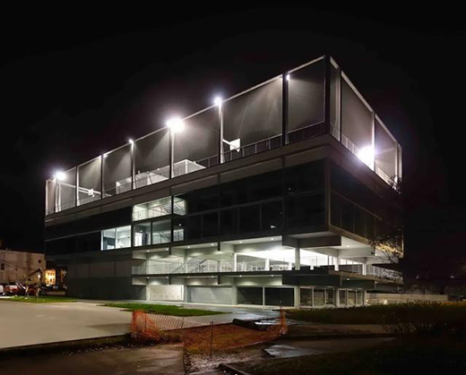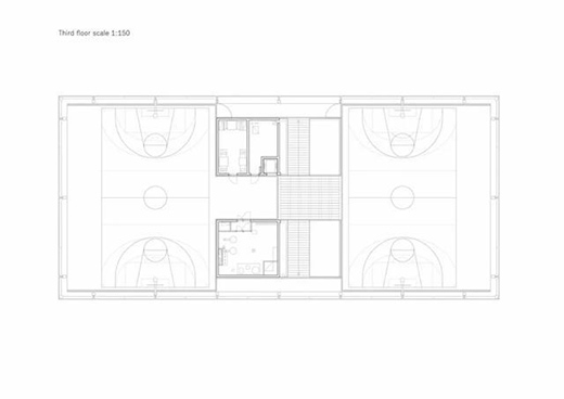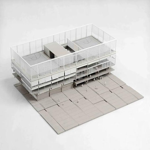 建筑通过垂直组合的方式将各种活动叠合起来,并把屋顶作为全景活动场,供足球和篮球比赛用。不同区域皆通过一个室外楼梯连接,这样进入每个区域时都不需要穿过另一个。建筑像一个“城市架子”,以一种垂直公共空间的姿态,全天向校园访问者开放。