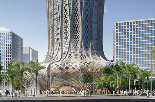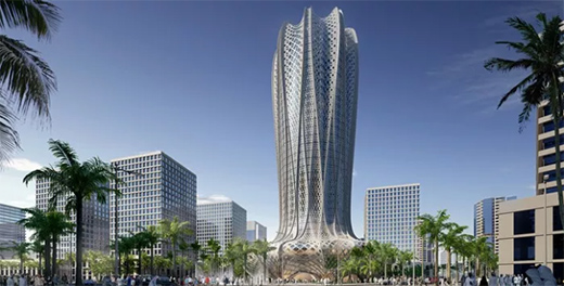 扎哈·哈迪德建筑事务所执掌的卡塔尔Lusail酒店项目,设计灵感由沙漠风信子的结构启发而来,它是一种波斯湾原生的开花植物,学名Cistanche tubulosa(管花肉苁蓉)。