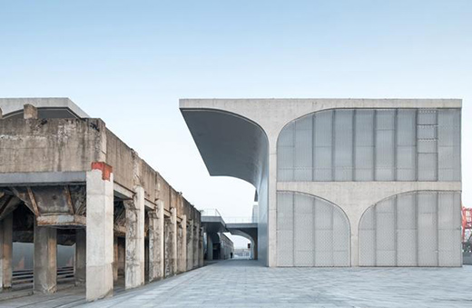 建筑界早不乏混凝土拱形设计,2014年竣工的上海龙美术馆,建筑主体以独特 “伞拱”结构为建构特征,大尺度出挑的拱形结构由清水混凝土浇灌而成,呈自由状布局的剪力墙插入地下与原有框架结构柱浇筑一起。