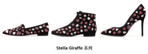 创意总监Capucine Safyurtlu将2016秋季系列中的经典元素继续发扬光大,黑色小山羊皮、真丝、绸缎与此系列中令人眼花缭乱的装饰品形成优雅的对比。一层层手工刺绣的水晶和珍珠包裹着型体,引人瞩目的银线提花红唇图案在丝绸布料上重复,交于缀有珍珠的水晶鞋跟。镶嵌着抛光矩形水晶的Stella金属环扣,高雅贵气。