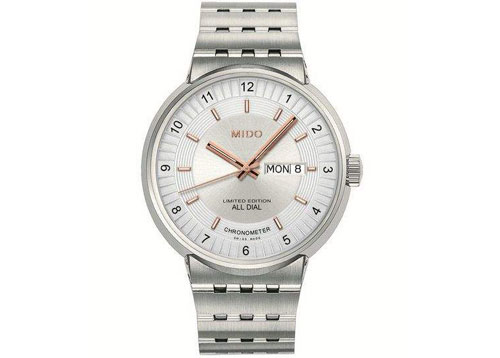 机芯 美度1192全自动机械机芯(以ETA 2892-A2为基础),11½’’’,直径25.6 mm, 21钻,28,800次摆幅/小时。精雕细琢的机芯配以蓝色螺钉,自动摆陀精心雕刻日内瓦波纹和MIDO标志。时分秒日期显示。4个方向调整其走时精确性。