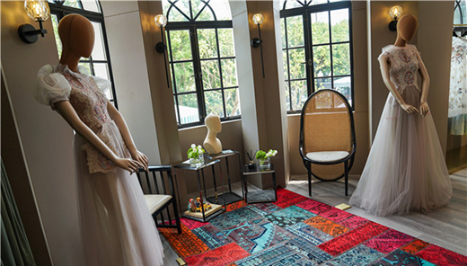 用郁金香和剔透亚克力堆搭的现场,重构出一座充满艺术气息的魔都乌托邦,伴随着wangfeng匠人缝制馆的开业,也将为“china design ”增添另一种感知礼服的可能性。