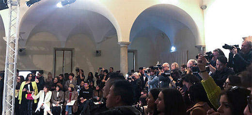 意大利时尚财经媒体Class Editori集团主席Paolo Panerai,阿玛尼女装总监JULIA HOFFMAN等意大利政要、欧洲时尚界买手、采购商、设计师,国际知名时尚报刊、杂志媒体等300多位嘉宾出席发布秀,欣赏这场东西结合的时尚大秀。