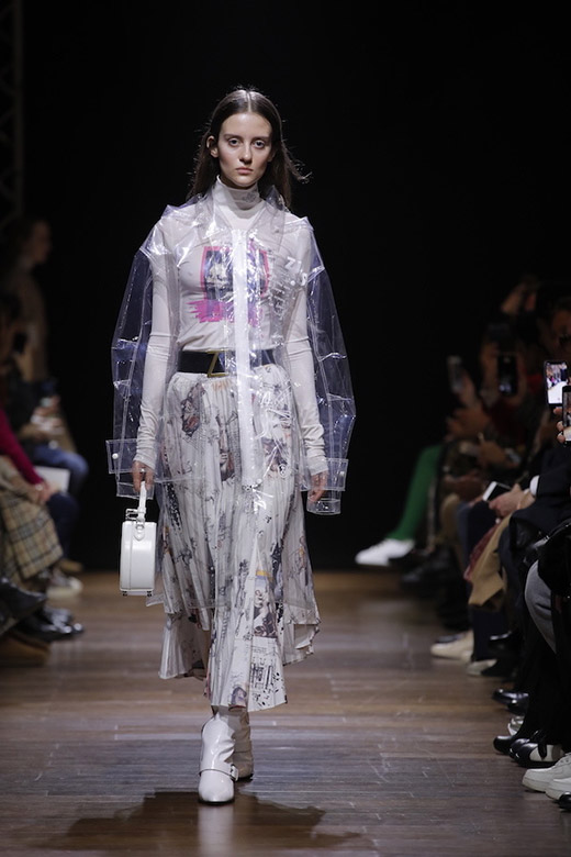除了创作思路上大幅度变化,本次发布突破2018首秀中的皮革主旋律,形成了“皮革+时装”协奏,除了欧洲观众熟悉的海宁皮装,海宁时装的首秀也是大放异彩。设计师通过达芬奇传奇一生的解读和畅想进行再创作,巧妙的将皮革元素与时装元素相结合,跳跃的色彩、夸张的图案,使得整个秋冬发布系列更大胆,更震撼。