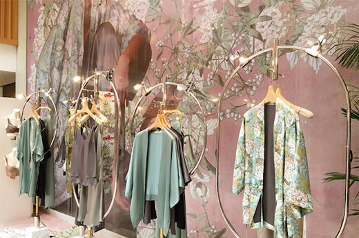 快闪店除了陈列现有系列以外,新的家居系列也出现在顾客眼前,宽袍水袖,完全跳脱传统分体式家居的模式,将中国古代one size fit all的智慧表现得淋漓尽致。真丝和印花两面穿的“洛神”系列也吸引了男性顾客的注意,优雅和大廓型的设计是可以满足很多人的居家需求,而印花也不只是女性专利。可以和外穿服装混搭的家居服,才是真正意义上的内衣外穿典范。