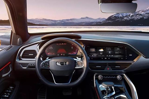 内饰部分,排挡区与大灯高度调节开关等诸多细节融入了具有中国特色的吉利回形家族元素,在和谐统一的基调中强化了中式情感与吉利品牌之间的呼应与关联。除此之外,具有“中式折纸艺术形态”的车门板设计以及采用了“阴阳”与“翻转”的设计理念的空调出风口亦是“中式美学”的体现。