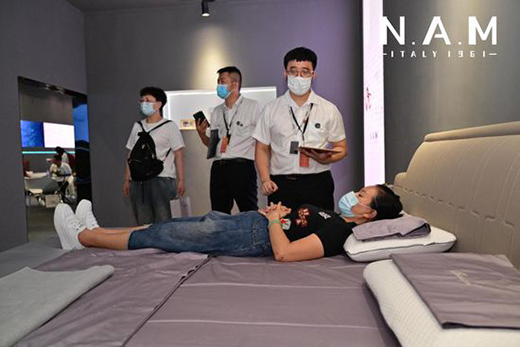 戴文周也提到,品牌以“我懂你的睡眠”为出发点,借此也希望向消费者和市场传达意大利N.A.M的服务理念:让天下人睡好觉、好睡觉。“本次展会上不仅是品牌的中国首秀,同时也发布了一款全新的产品——AI智能调节床”,戴文周介绍说:“这款床垫真正实现了根据人体结构自动调节软硬度的智能性能,打破了传统床垫定义、突破固有技术的软硬度,同时结合智能监测、大数据分析等技术,为使用者提供完善的睡眠状况报告及改善建议。”