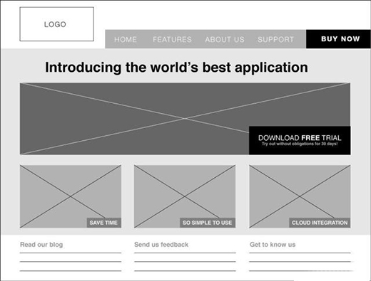 在网站线框图中,我们并不关心我们的按钮看起来如何,我们将选择什么颜色,我们使用什么图像等等,这些都与数据有关,我们希望用户在第一页看到什么样的形式。