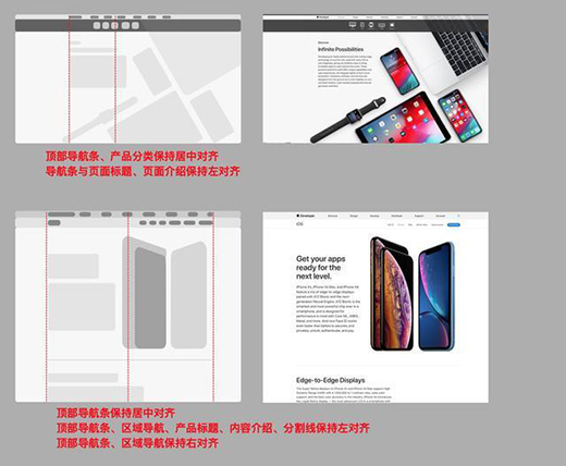 如Apple官网,操作导航、产品分类、网页介绍、背景通过亲密性组合在一起,使得网页逻辑清晰。