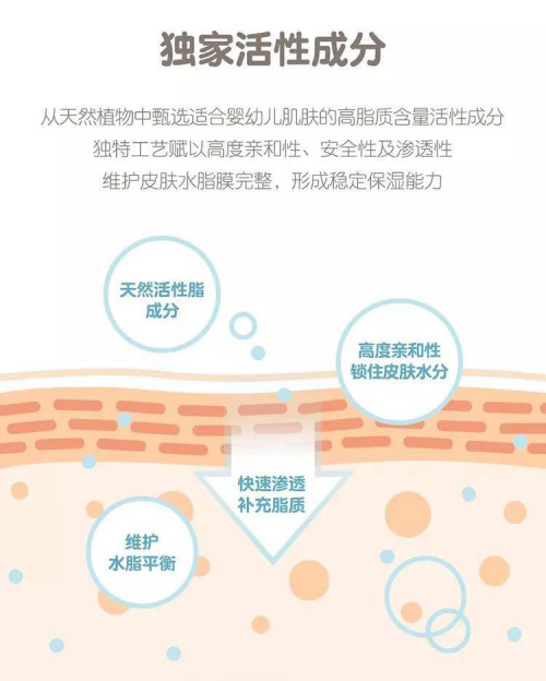 与成人的皮肤相比,婴幼儿的皮肤功能和结构发育都不完善;皮肤厚度仅为成人的1/3,角质层也没有发育成熟,容易因摩擦损伤肌肤,难以适应干燥的环境;皮肤水分更容易散失,保水能力差。因此,维持宝宝皮肤健康,保护水脂膜是关键。宝贝吉儿拥有全球领先的脂质活性成分处理工艺,甄选适合婴幼儿肌肤的天然活性脂成分,独特工艺更赋以高度亲和性、快速渗透性,维护皮肤水脂膜完整,形成稳定的保湿能力,全力呵护宝宝健康天使肌。