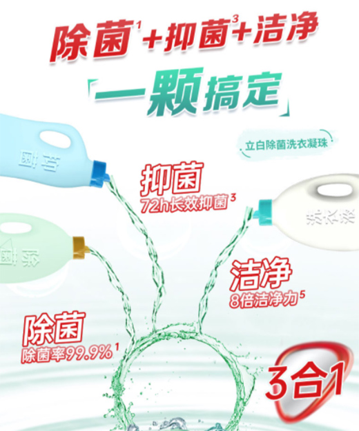 说到洗护产品,立白品牌可谓是“国货之光”了,据说10户城市家庭,就有7家用立白。还清晰记得小时候看电视时立白洗洁精的广告词“用立白不伤手”,多数家庭即使用的不是立白洗衣液,洗洁精也很可能是立白的。如今随着国民生活水平的不断提高,洗衣机已经成为每个家庭的基础电器,洗护用品也在随之变化,从之前的洗衣膏、洗衣粉、肥皂到现在的各种功效洗衣液。最近两年又出现了新的产品——洗衣凝珠。作为衣物洗护领域领导者,立白将国际领先的技术应用到产品研发中,创新推出立白除菌洗衣凝珠。