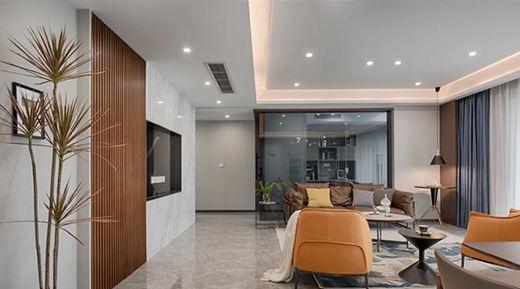 客厅作为家里一个比较宽敞的空间,它承载着家人的日常活动、亲子互动、接待客人等,在装修客厅的时候往往是以宽敞大方的格局为主,以让人置身其中感受到舒适宽松的氛围。当无主灯极简理念与客厅设计融为一体时,客厅的无主灯设计就可以从电视背景墙、沙发背景墙、客厅中央(茶几区域)等区域着手。