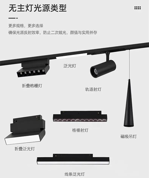 吊线灯。空间高度过高,需要实现近距离照明效果时,可以选择吊线型磁吸灯。