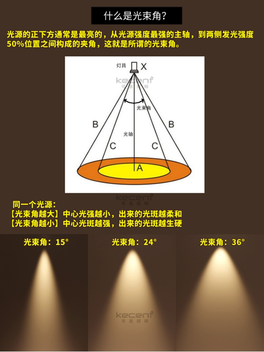 其中24°光束角被称为万能光束角,中心光柔和,光型美,用来照画洗墙或局部照明,都是可以的。如果大家实在不会选光束角,那就直接挑24°光束角的灯,降低出错率。