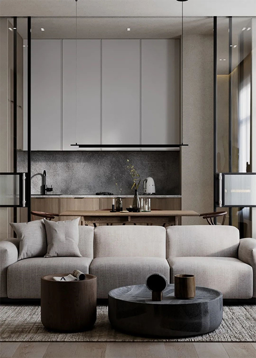 高层高、小户型公寓 下沉式吊顶、暗藏筒灯、灯带演绎极简设计