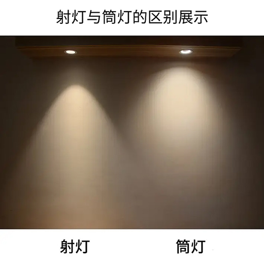 先说筒灯和射灯怎么选:洗墙聚光用射灯,厨卫过道用筒灯。