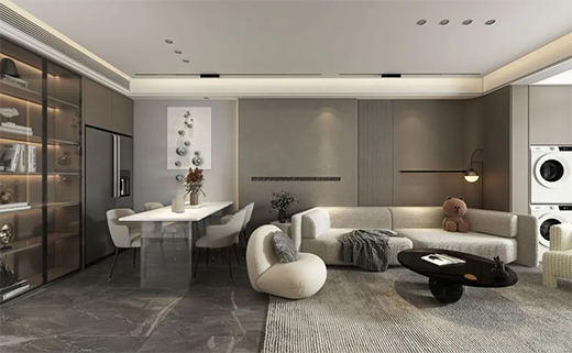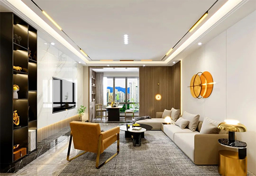 客厅采取无主灯设计,可营造出不同光照氛围,满足不同生活场景需要。