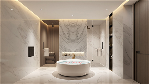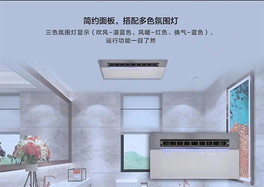 现代设计,一般安装集成暖风浴霸为主,集合了照明、排气、吹风和取暖、温控功能,实用便捷。