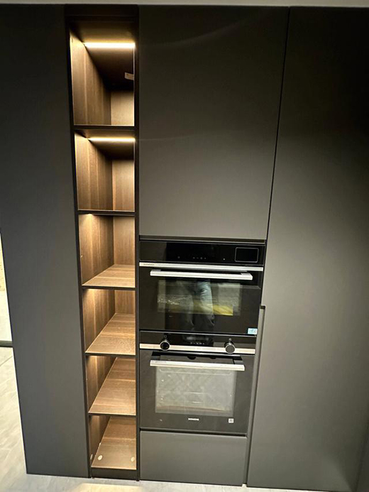 设计柜子的时候,烤箱做了嵌入式的,比较 能会利用空间,而且看着更为高端一些,使用的时候没有任何影响哈!