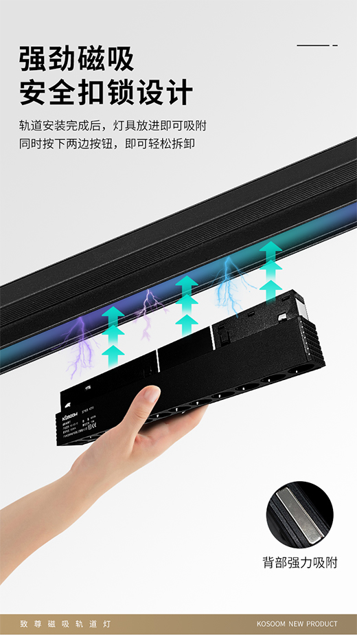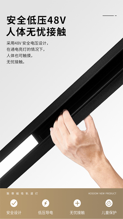 该系列产品不仅具有显色性高、灵活搭配、强力磁吸等特点,更承载安全升级一体式变压器,不仅安装方便,更是控制48V安全电压,轻松无忧更换模块。