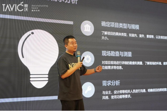 照明设计不仅仅是技术的应用,更是一种艺术和情感的表达。郑志伟老师、许锋兵老师通过对照明设计及应用、探讨不同类型空间的照明设计、分析不同场景的需求、考虑功能性与氛围营造、介绍如何选择灯具、进行合理的布局规划、探讨色温与色彩对氛围和情感的影响等方面的讲授,让学员全方位领会如何提出相应的照明设计与艺术应用解决方案。