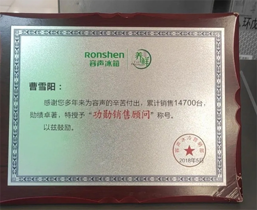 在容声工作的这16年里,曹雪阳靠着自己的勤奋和智慧在导购工作中走出了属于自己精彩的一路。曹雪阳说,未来她将在这条路上不忘初心,继续前行,为了自己,也为了对容声品牌的坚守。