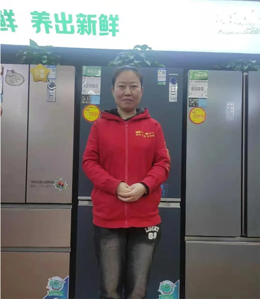 “新年开工,新气象,超越过往,奔向新目标。”这是济南国美和谐广场店曹雪阳在接受我们采访时说的一句话,身为门店销售精英的曹雪阳从2005年加入容声,至今已有16个工作年头。在这16年里曹雪阳获奖无数,销售的冰箱台数更是数不胜数,在新年的第一个月里曹雪阳就以一己之力销售了上百台冰箱,为自己来了个开门红。