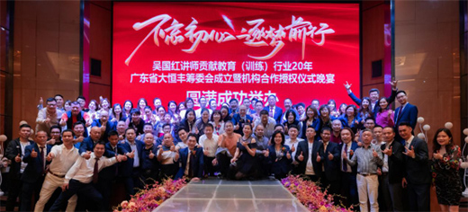 3月13日晚上,主办方深圳大健康产业有限公司联合协办方恒保企业在广州市海珠区稻香酒家(盈熙店)隆重举办了一场晚宴。本次晚宴以“不忘初心,逐梦前行”为主题,庆祝吴国红讲师贡献教育(训练)行业20年、广东省大恒丰筹委会成立以及雷锋杂志社东莞站对吴国红讲师和大恒丰(筹)战略合作授牌仪式。
