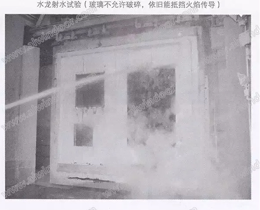在欧洲防火玻璃通常需要做水龙射水试验,所谓水龙射水试验就是要用水龙头对在规定的防火测试完的防火玻璃进行射水,看玻璃是否立即破碎,做此实验的原因是当消防人员赶到现场时,消防人员将进行灭火,如果防火玻璃一碰到水就直接破裂,那有可能在没扑灭火的时候导致火从着火面传导到背火面。