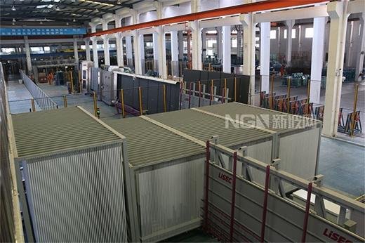 为了适应防火玻璃的生产需求,隆玻对东莞工厂进行了升级改造,防火玻璃生产的核心环节钢化部分隆玻技术团队经过反复论证,放弃了早前钢化炉大幅度改造的计划,个性化订制隆玻生产理论与技术标准的防火玻璃钢化炉,最终北玻在竞标中突围,车间里分别购置于2014年和2017年当前运转状况良好的的两台双室钢化炉被“请”出了车间,腾出空间静候年产量200万平方米的新钢化炉进驻。