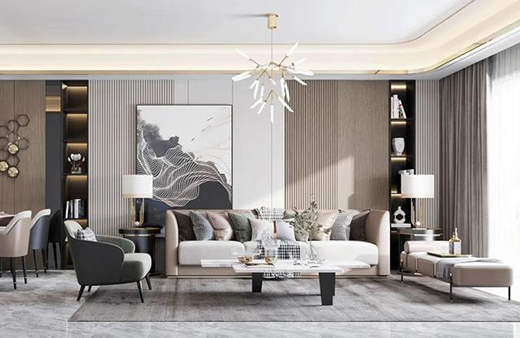 木饰面拥有良好的恒温性、降噪性,不仅能有效保护建筑墙面,又具有极佳的装饰性。与普通乳胶漆墙面相比,木饰面沙发墙靠放沙发更有利于墙面保护。