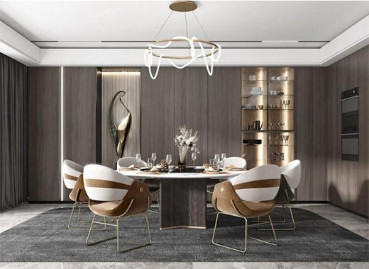 木材以其独有的温润质感,给人以自然美的享受,使室内空间产生温暖和亲切感,这是其他装饰材料所不具备的。木质元素用它细腻的纹理、多变的造型、沉稳的色泽,让整个空间更显档次,在室内装饰中广泛应用。
