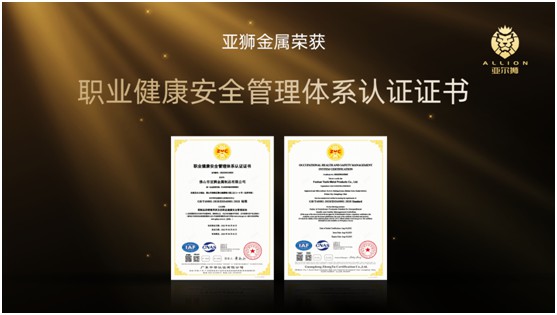 近日,亚狮金属顺利通过了国家权威“质量、环境、健康安全”3项ISO认证,这不仅标志着公司产品与服务达到了国际最新的质量管理体系标准,且具备职业健康安全风险的管理能力和产品与服务的环境保护能力。