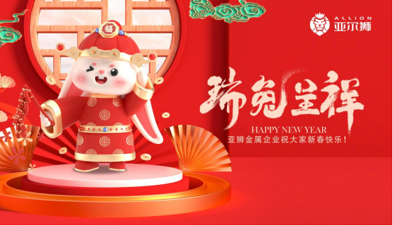 时序更替,岁月如歌,又是新春佳节时,感谢大家对亚狮金属企业一年的陪伴与支持,使公司不断发展和前进。在新春来临之际,亚狮金属向关心企业发展的建设者、参与者、支持者致以崇高的敬意和衷心的感谢!祝大家:兔年大吉,大展宏兔;新春吉祥,阖家安康!