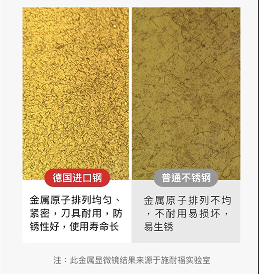 一是德国4034钢材本身紧密的结构决定了厨刀的硬度和耐腐蚀性,让厨刀能经久耐用。二是德国4034钢材的耐磨性和锋利保持度,让这把厨刀能时刻保持刀刀锋利,用起来省心省力。