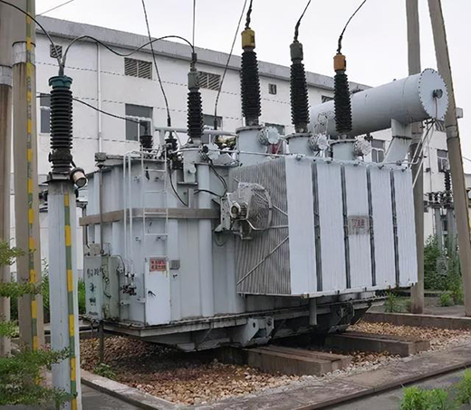 油浸式变压器,是以油作为变压器主要绝缘手段,并依靠油作冷却介质,如油浸自冷,油浸风冷,油浸水冷及强迫油循环等。变压器的主要部件有铁芯,绕组,油箱,油枕,呼吸器,防爆管(压力释放阀),散热器,绝缘套管,分接开关,气体继电器,温度计,净油器等。