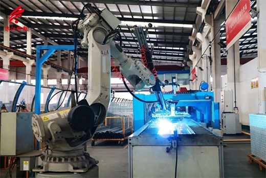 标准门板生产线上的焊接、码垛机器人正在作业。