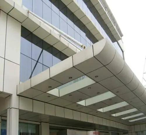 铝单板雨棚不仅性能优异,而且造型百变,可塑性强,可生产加工成各种形状、图案、颜色的雨棚铝单板,装饰效果好。