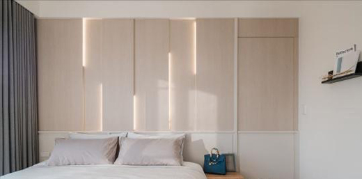 洗墙照明常见于商业空间,其实在家中使用,会有一种像是住在酒店的高级感呢!不妨先加强床头墙的造型设计,并运用洗强照明来强调它,让整个卧室看起来更有风格。像是以下两个案例,便是通过洗墙灯的辅助,让墙面产生光影错落的效果,看起来特别有质感!
