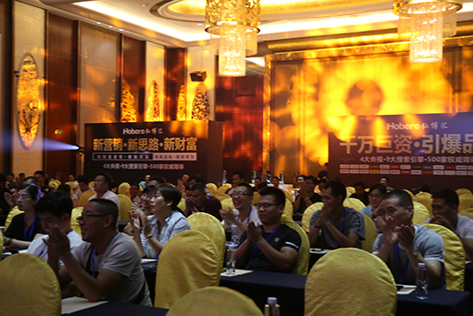 在主持人的引领下,特邀嘉宾黄宏伟先生上台针对个人终端运营经历进行重要讲话,并着重分享了加入弘博汇大家庭以来所积累的经验与个人成就。黄宏伟先生表示:自从加盟弘博汇以来,便时刻感受到弘博汇总部对经销商的重视与关爱,而终端门店也一直以又快又好的速度发展着,在市场中有效挖掘到宝贵的财富。在此,对弘博汇总部一直以来的帮助与扶持致以最诚挚的感谢,在未来自己也将紧跟弘博汇总部的脚步,脚踏实地一步一步走下去,为弘博汇品牌的荣耀发展贡献力量!