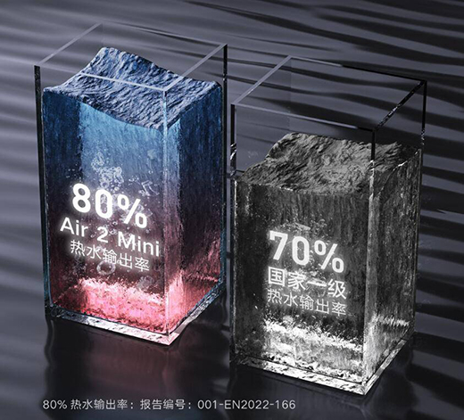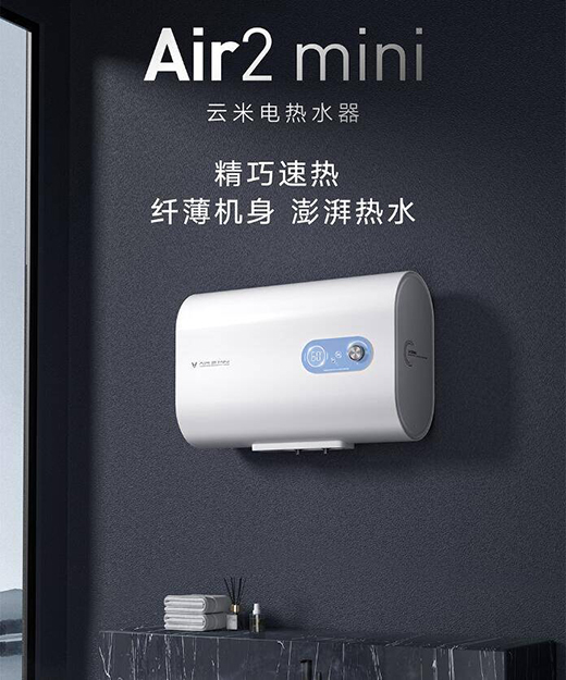 云米AI热水器Air 2 mini设计了50L双胆速热,采用动态增容技术,能够实现5倍的水量增容,连续出水量超过400L。同时,这款热水器采用了2100W大功率下胆下潜加热管加热的方式。