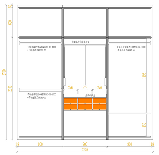 裤架:抽屉高度80-100mm (悬挂空间不少于600mm,悬挂长裤)